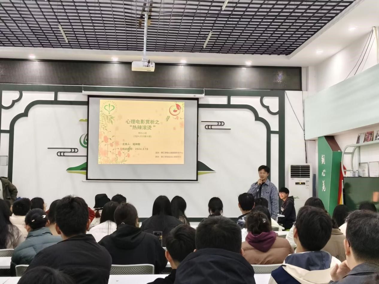 3月15日晚,beat365官网心理健康教育中心在多功能室开展了2023-2024第十期周五心语活动——心理电影赏析之《热辣滚烫》。此次活动由2022级化学工程与工艺班梁坤刚同学主持,共有60名来自不同学院的同学参加。