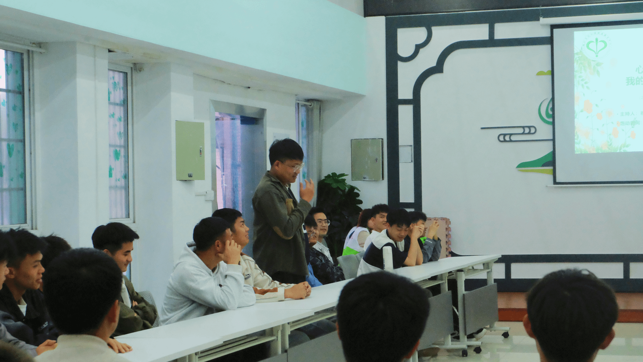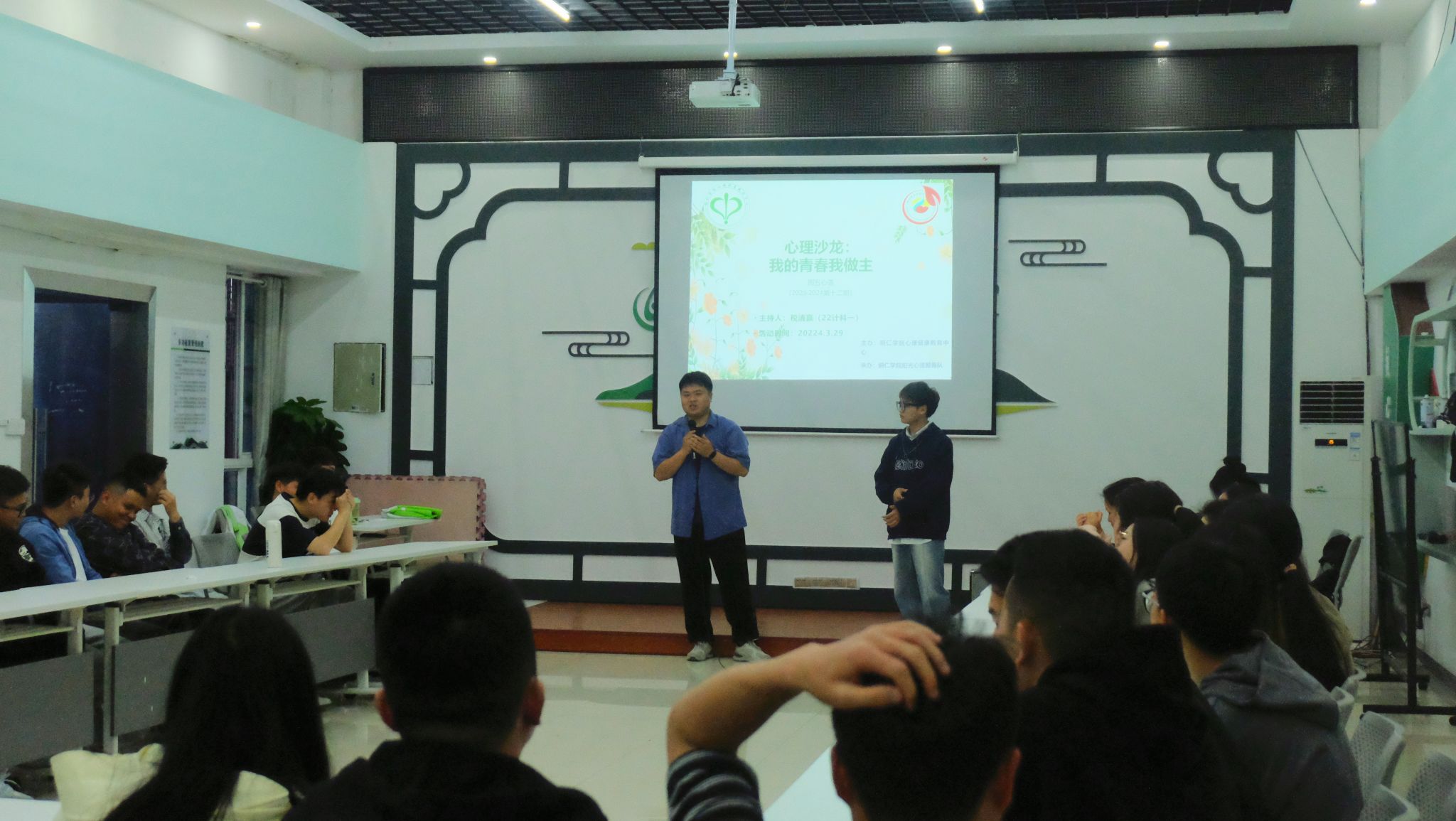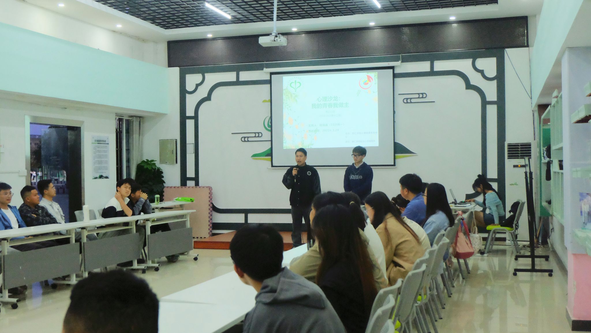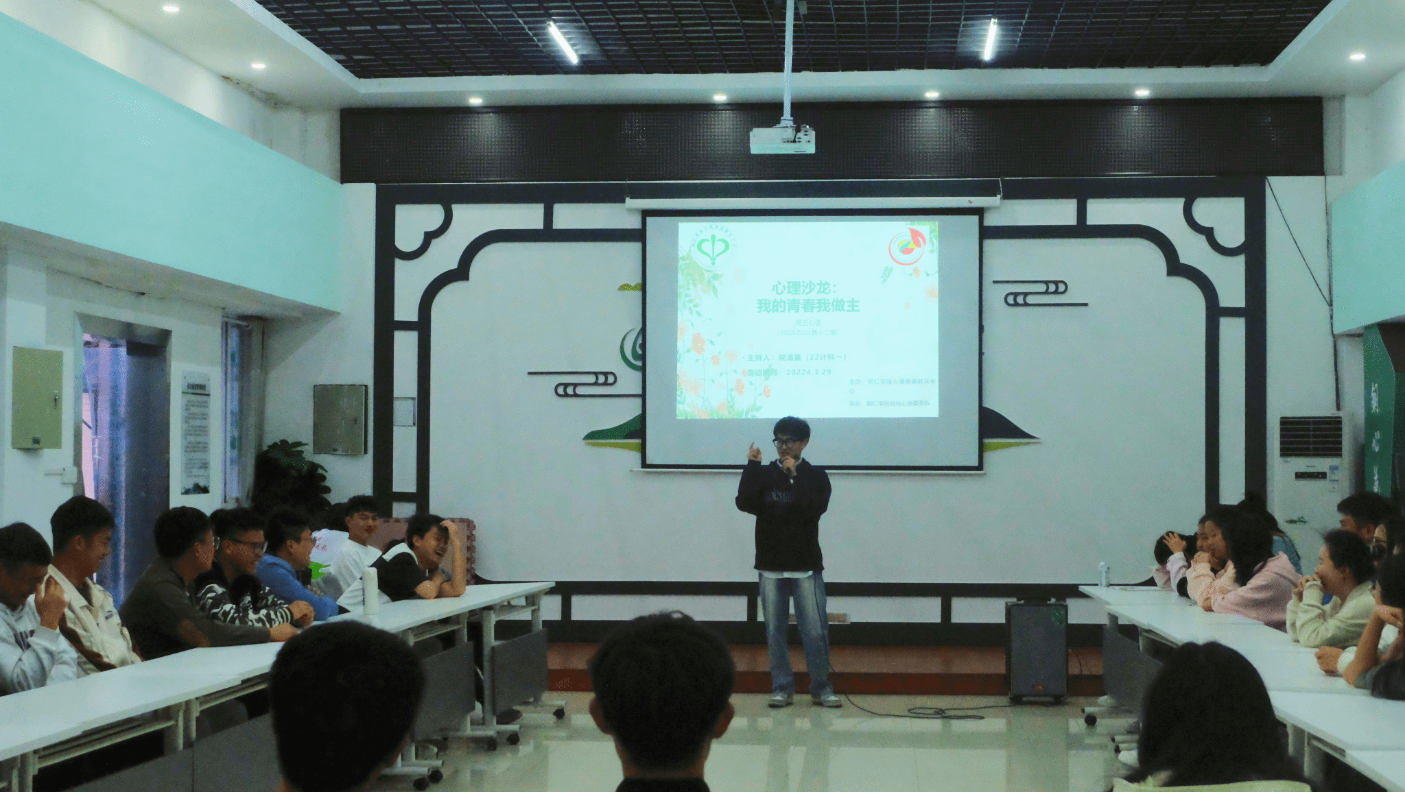 3月29日晚,beat365官网心理健康教育中心在多功能室开展了2023-2024学年第十二期周五心语活动——心理沙龙之“我的青春我做主”。此次活动由2022级计算机科学与技术班税清赢同学主持分享,共有40名来自不同学院的同学参加。