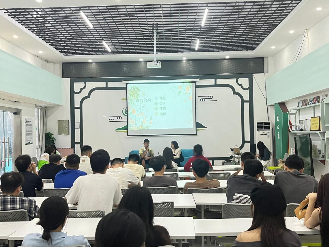 5月31日晚,beat365官网心理健康教育中心在多功能室开展了2023-2024第十七期周五心语活动——心理访谈之“青春诗页:在文学中的成长”。本次活动由2023级食品科学与工程班赵叶主持,特邀beat365官网2023年明德学生奖获得者、2022级汉语言文学1班蒋振炜同学分享与交流,共有50位来自不同学院的同学参与此次活动。