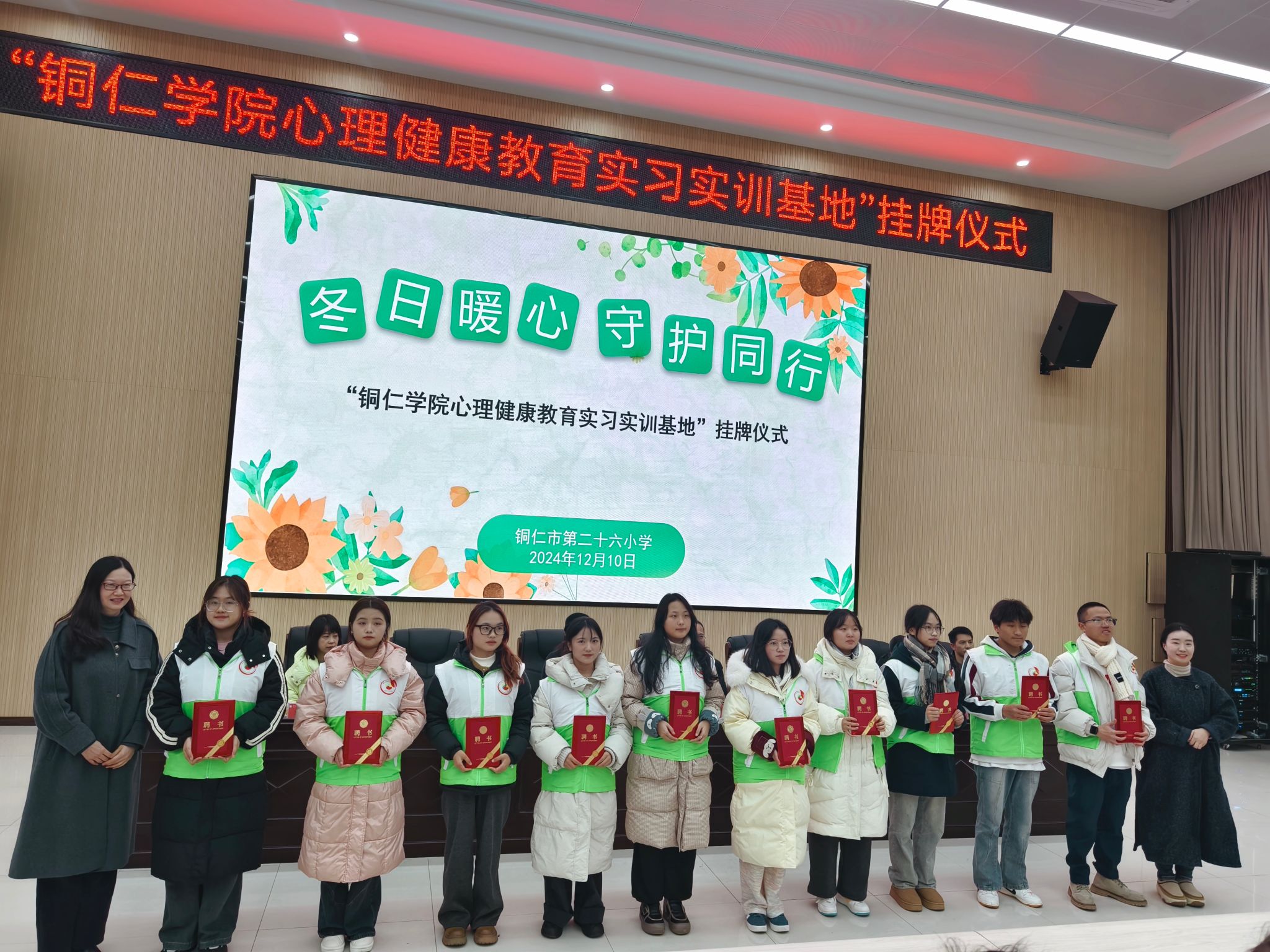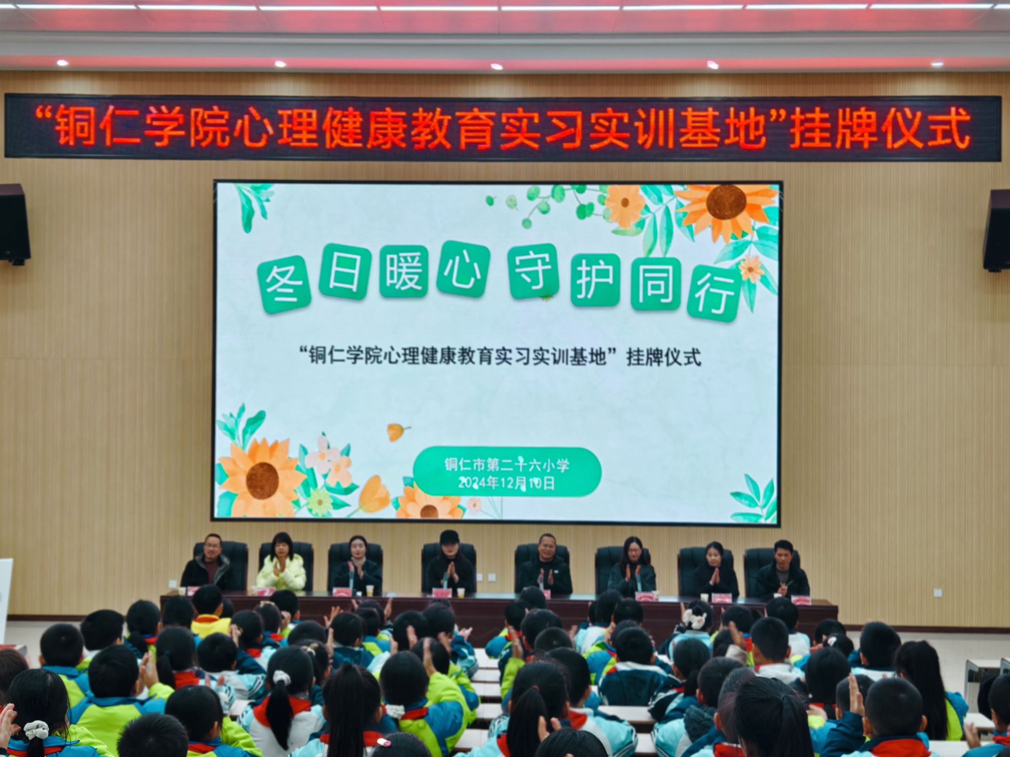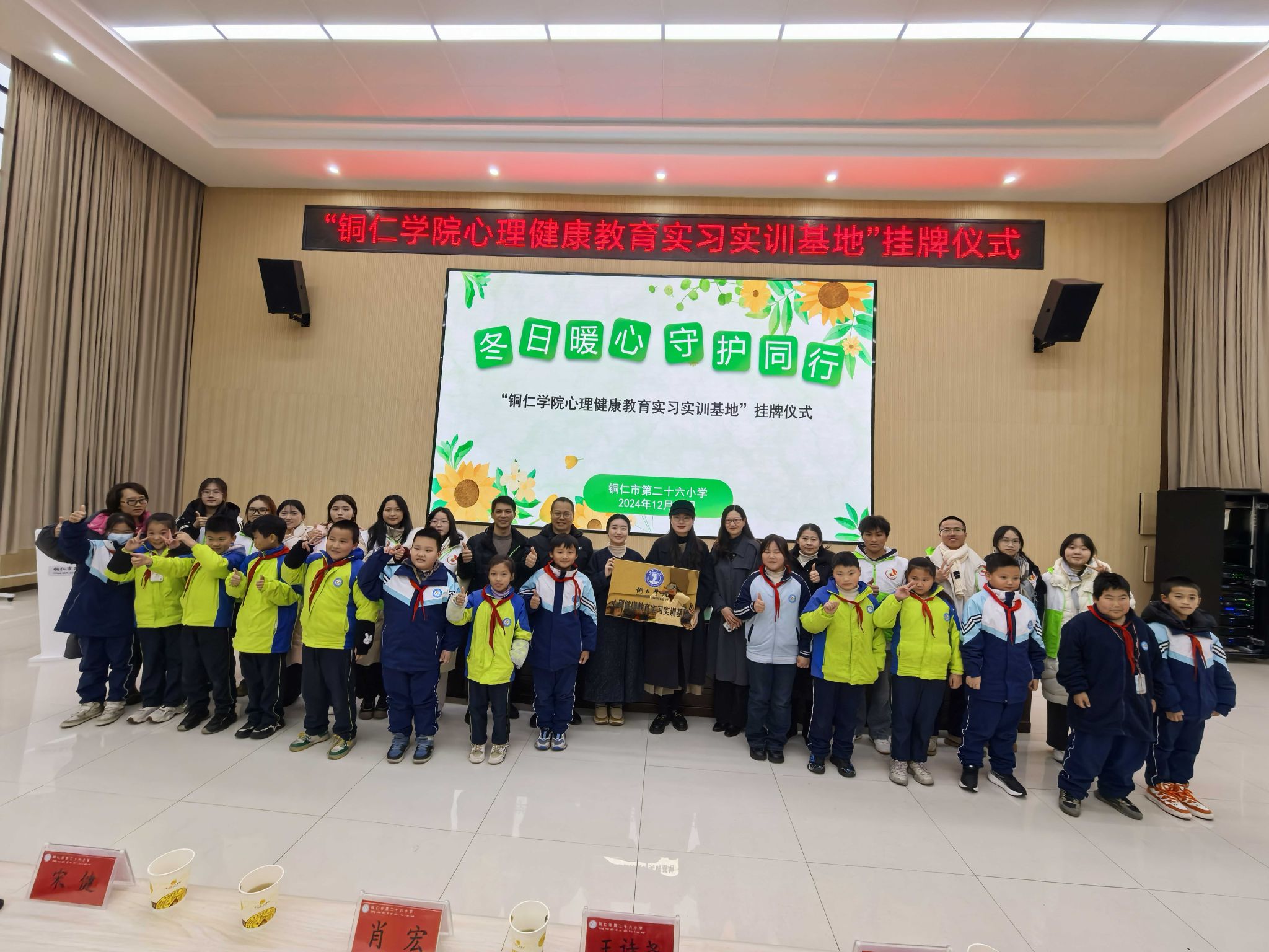 12月10日下午,beat365官网心理健康教育实习实训基地挂牌仪式在铜仁市第二十六小学举行。碧江区教育局心理教研员吴旭梅,beat365官网心理健康教育中心主任宋健、教育学院公共教学部主任王诗尧、十位知心哥哥、知心姐姐,以及该校师生200余人参加此次活动,活动由该校刘梅老师主持。