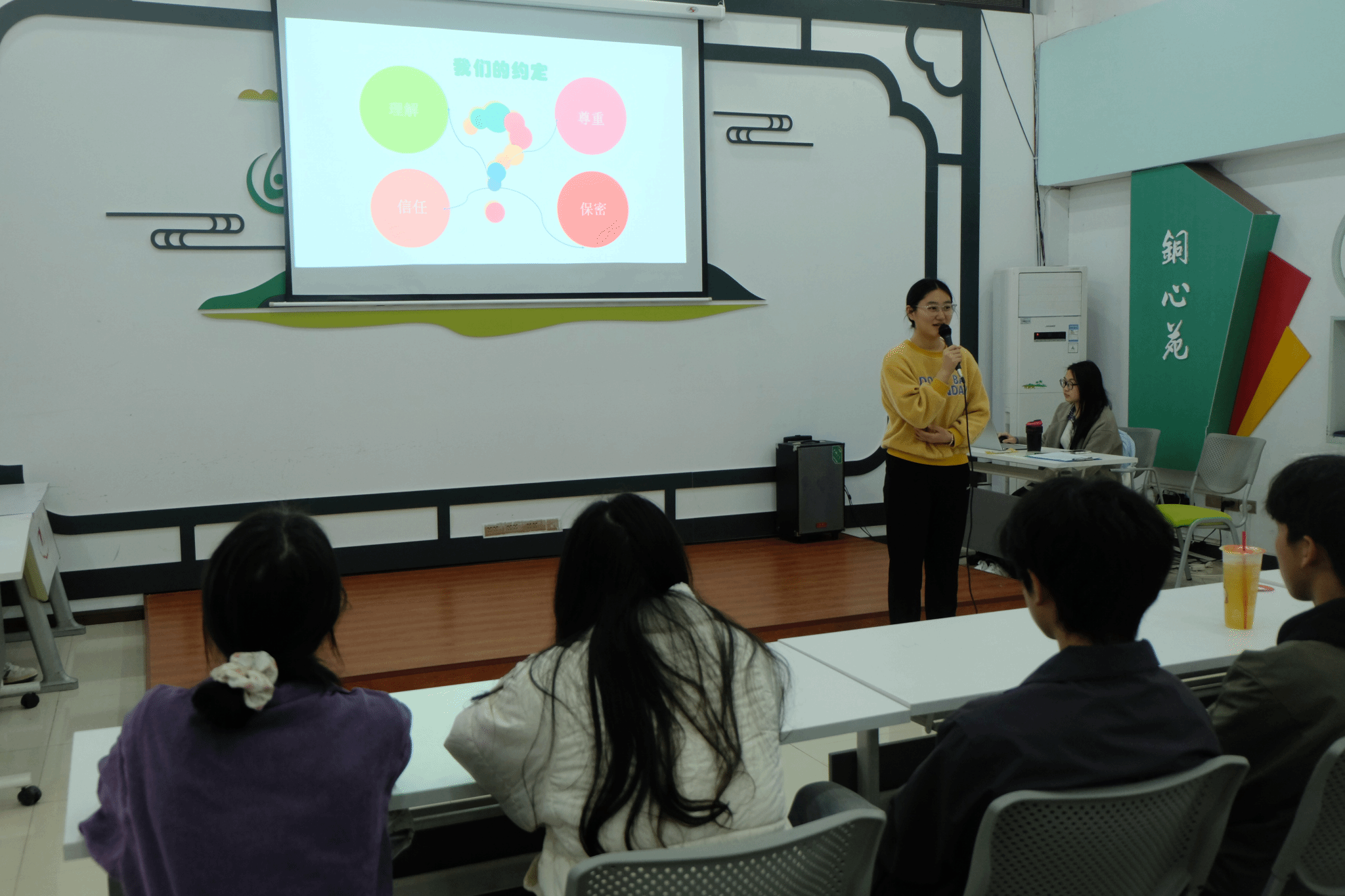 活动伊始,主持人肖小兰以“如果你的生命只剩一天,你会做什么?”这一引人深思的问题开场,迅速引发了同学们的思考与讨论,现场气氛热烈。借此契机,主持人巧妙引出本期活动的主题“我们的约定”,强调了尊重、信任、理解与保密四大原则的重要性,并鼓励同学们带着这些关键词,从影片中感悟生活的真谛。