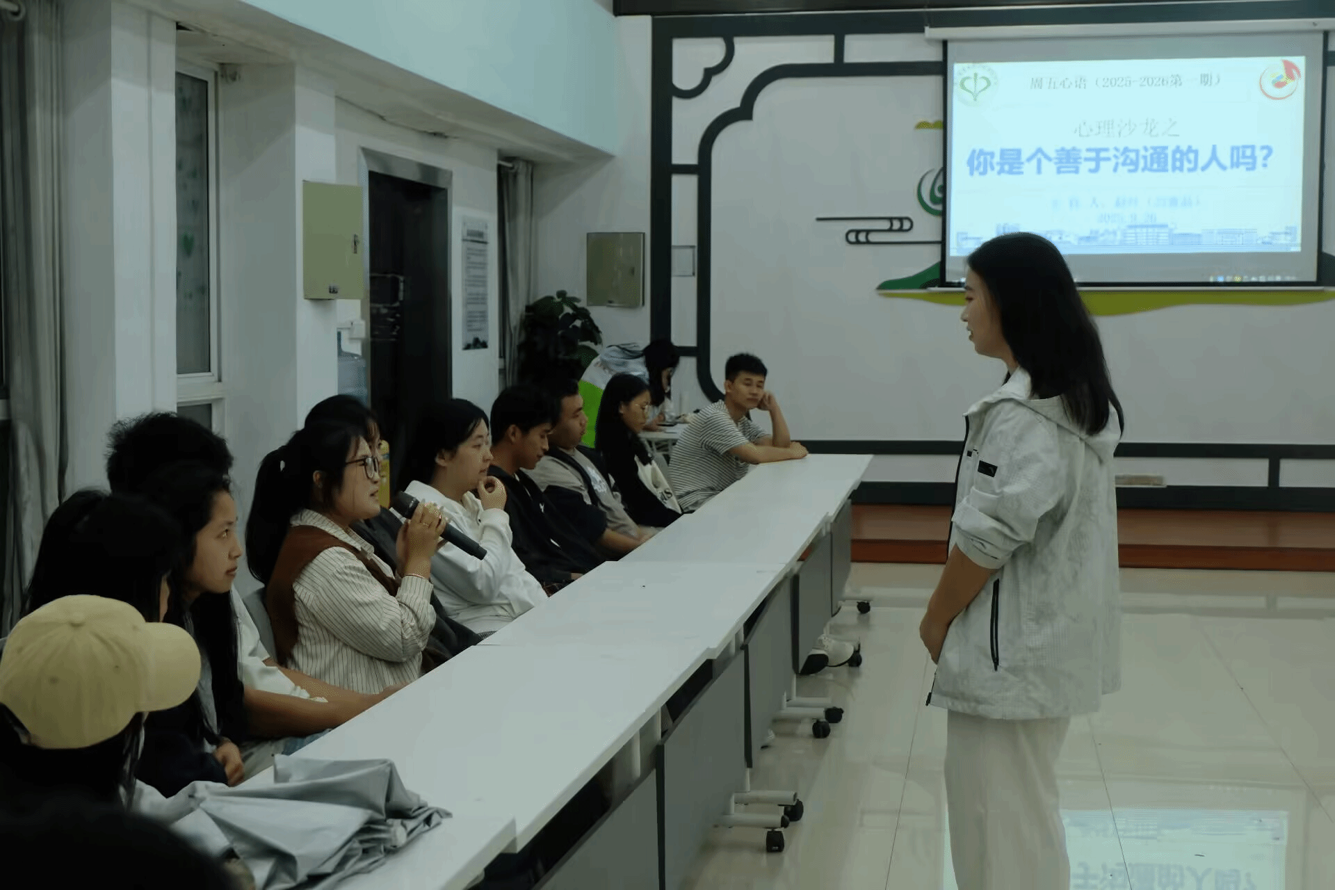活动伊始,主持人以自身经历为例,分享了自己因缺乏沟通而失去朋友的故事,并抛出“如何通过有效沟通来处理人际关系”的话题,引发同学们的热烈讨论,现场气氛迅速活跃起来。