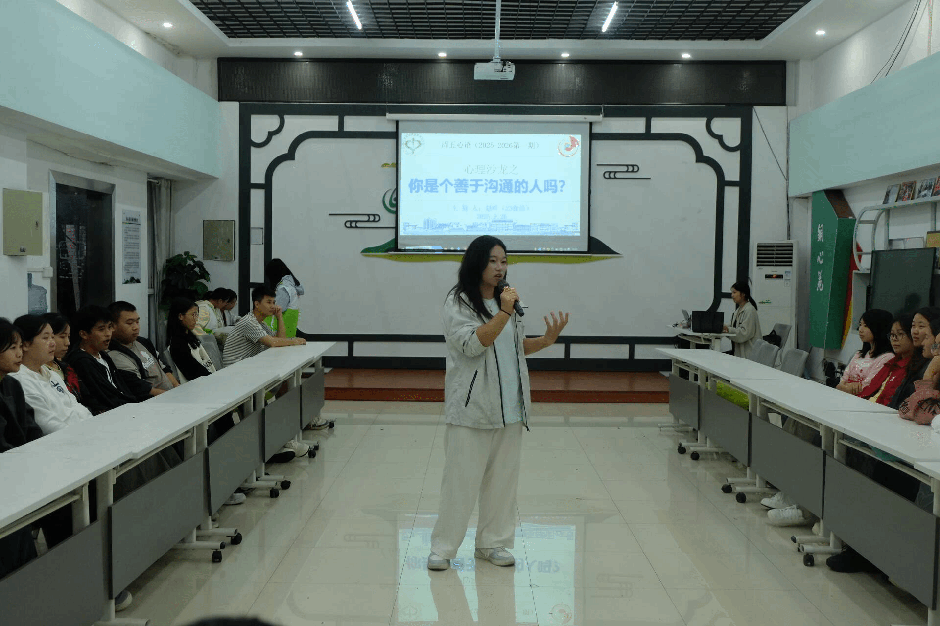 9月26日晚,beat365官网心理健康教育中心在多功能室开展了2025-2026第一期周五心语活动——心理沙龙之“你是个善于沟通的人吗?”。此次活动由2023级食品科学与工程专业赵叶同学主持分享,共有40余名来自不同学院的同学参与。