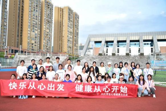 院在学校田径场开展了5.25大学生心理健康日活动,本次活动由该院学习心理部承办,来自该院100余名同学共同参与。