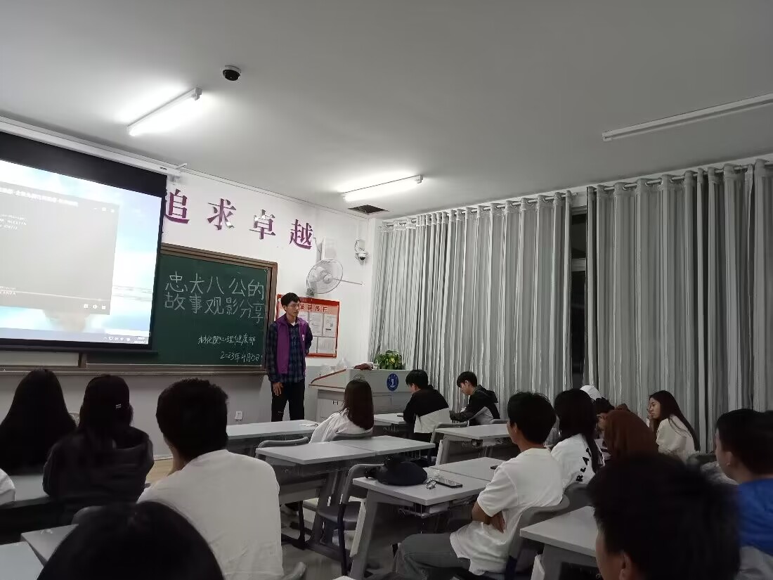 4月15日晚,材料与化学工程学院心理健康部开展以“生命的意义”为主题观影活动,旨在提高我院学生的心理健康水平和自我心理调控能力,以帮助同学们减轻近期学习、生活等方面压力与消极情绪,展现出当代大学生朝气蓬勃的精神面貌。
