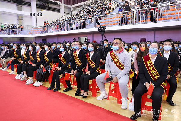 典礼上,获奖代表朱高俊与大家分享了自己入伍当兵和退伍考研的经历。他感言,有一种青春的色彩叫做迷彩绿,有一段闪亮的岁月叫做考研路,很荣幸两个都给自己遇上了。他以自身经历勉励新一代铜院学子努力前行,付诸实践,绝不轻言放弃。