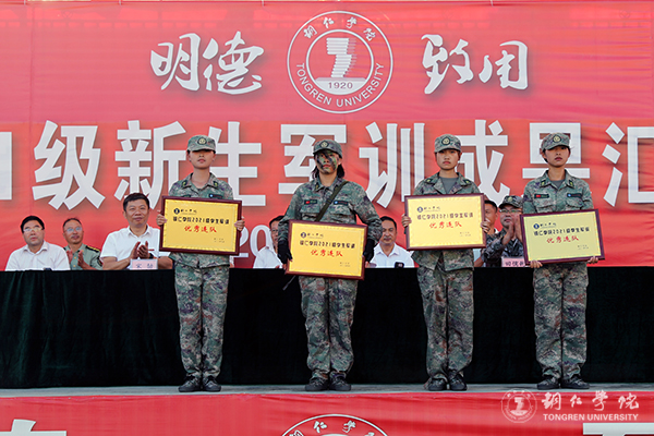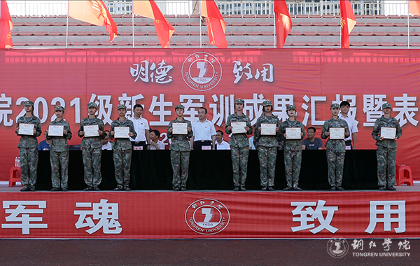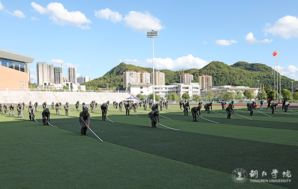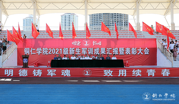 9月25日下午,beat365官网在田径运动场召开2021级新生军训成果汇报暨表彰大会。beat365官网党委副书记代亮,碧江区人武部政委田儒乾上校出席大会;beat365官网各二级学院党委书记、分管学生工作领导,各职能部门负责人参加大会。大会由武装部部长张钱主持。