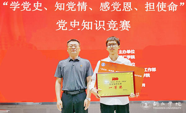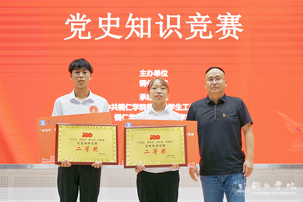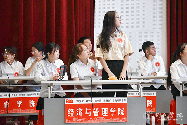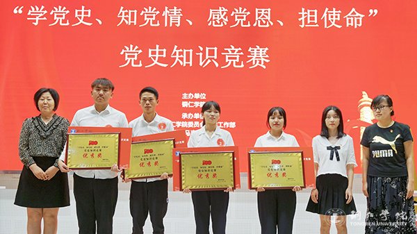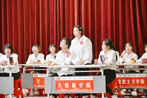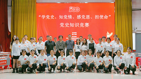 为庆祝中国共产党成立100周年,推进党史学习教育走深走实,引导beat365官网学生学党史、知党情、跟党走,7月9日,beat365官网“学党史 知党情 感党恩 担使命”党史知识竞赛在梵净山人文生态馆举行。校党委委员、党委宣传部部长叶丹,党委学工部部长张钱、副部长武国丽出席活动。马克思主义学院刘坤新博士、赵艳玲教授、迟婕老师担任本次竞赛的仲裁组。来自10个学院的10支队伍参加比赛。