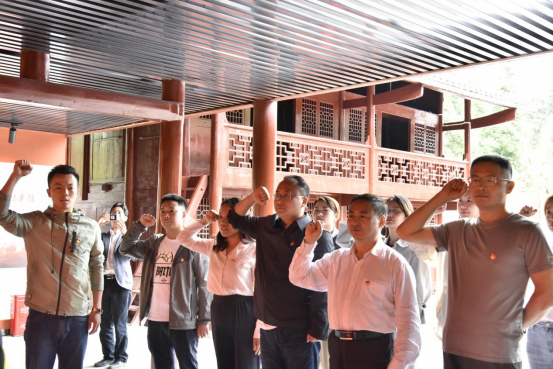 到达木根坡红军会师旧址。跟随讲解员的脚步,了解革命真实历史,感悟革命情怀,直观感受红军战士的艰苦条件和恶劣环境,追寻先烈足迹,增强红色记忆。听完讲解后,一行人在木根坡红军会师旧址大厅重温入党誓词,面对党旗再一次庄重地作出自己对党的庄严承诺。