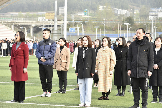 活动开始,在全体师生的注目下,国旗护卫队护送国旗进场,伴着国旗的上升,全体师生怀着对祖国崇高的敬意,奏唱国歌。
