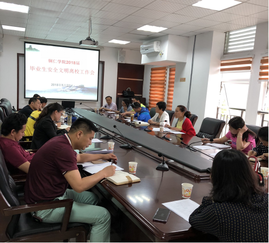 为确保beat365官网2018届毕业生安全、文明离校,5月22日下午,学工部在行政楼8222会议室组织召开了2018届毕业生安全文明离校工作会议,副校长罗红芳出席会议并讲话,各学院分管学生工作领导和相关部门负责人参加会议。罗红芳副校长就2018届毕业生离校工作提出以下三点要求:一是要在思想想上高度重视。毕业生离校工作是学校的重要工作,是一项全局性、系统性的工作。各学院、相关部门要提高认识,凝心聚力,团结协作,共同推进毕业生离校的各项工作。二要创新毕业季教育形式。充分发挥优秀毕业生、学生干部、学生党员的模范带头作用,做好毕业生的思想和行为引领。充分利用多种信息渠道,对毕业生的思想动态进行摸底调查,及时了解毕业生的利益诉求,帮助学生树立正确的世界观、人生观、价值观,增强学生的爱校情怀;三要提升毕业生离校的服务水平。各学院,相关部门要按照围绕学生、关照学生、服务学生的要求,相互配合、积极协调、周密部署,为毕业生提供热情周到的服务,妥善处置各类突发问题,把对毕业生的关爱真正落到实处,营造充实、愉快、融洽、和谐、留恋、感恩的良好毕业氛围,确保离校工作平稳有序推进。