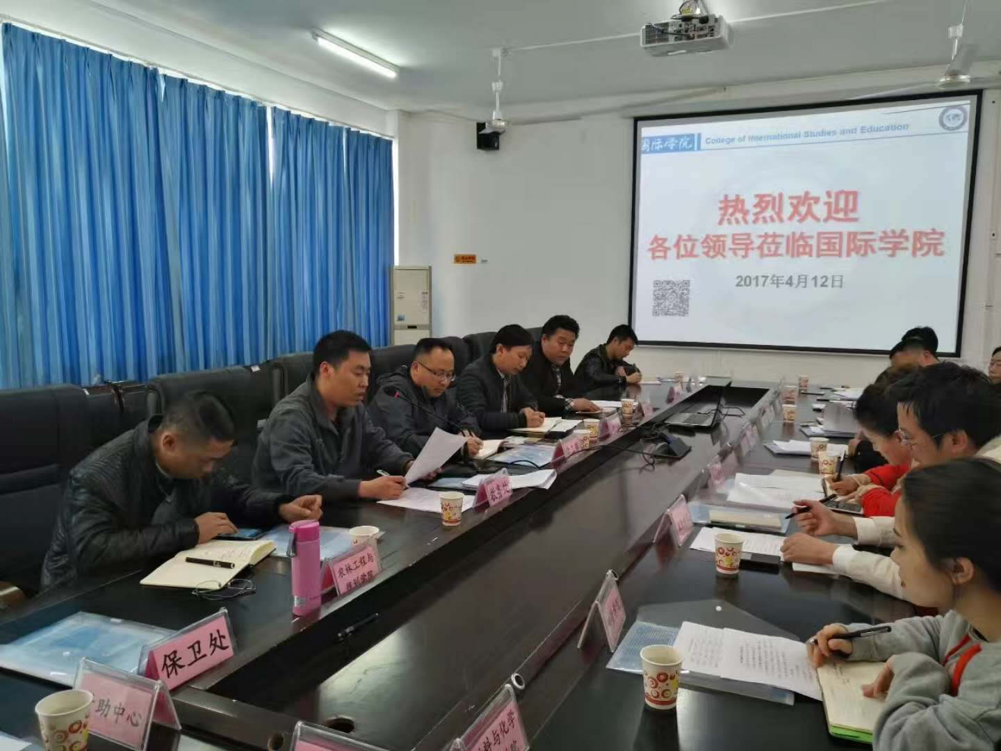 4月12日下午,beat365中国唯一官网学工部在国际学院召开2017年学生工作会议,学习《普通高等学校管理规定》(教育部令第41号),学工部部长张钱、副部长刘玉康及各学院院分管学生工作院长、副院长、学生科科长参加会议,会议由学工部部长张钱主持.