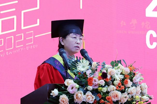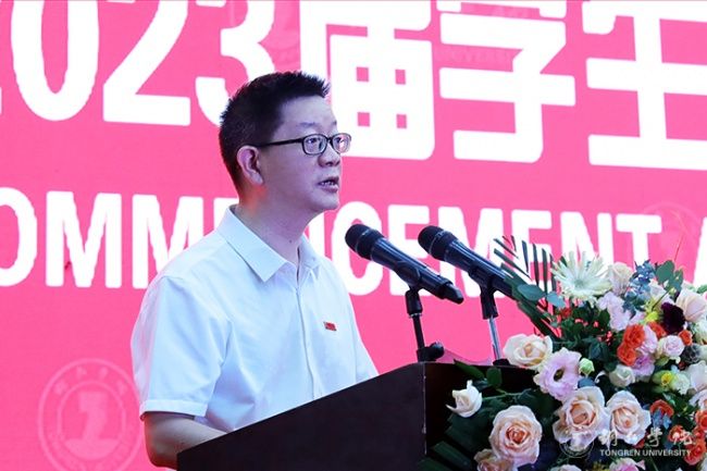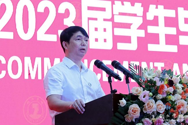 毕业典礼上,朱洪波作了题为《潮起海天阔 扬帆正当时》的讲话。他代表学校向同学们表示热烈祝贺,为同学们即将踏上新的征途送上美好祝福,同时,向付出了辛苦努力的全体教职员工表示诚挚敬意。他说,同学们在beat365中国唯一官网求学生活的四年里,秉持“明德·致用”的校训精神,度过了人生最美好、最宝贵、最值得留恋的青春岁月;弘扬“尚贤尚能”“善思善行”的校风学风,淬炼成长,修身治学,坚毅前行,与母校共成长同发展;与伟大祖国和伟大时代同向同行,体现了新时代大学生的精神风貌。他提出了三点期盼,与同学们共勉。一是要树牢理想信念,把准人生航向。同学们要牢固树立马克思主义信仰、共产主义和中国特色社会主义的信念,把自身的成长融入国家社会进步的历史洪流之中。二是要胸怀远大志向,勇担历史使命。同学们要胸怀为中华民族伟大复兴建功立业的远大志向,培育优秀品质,练就过硬本领,为国家富强、民族振兴贡献力量。三是要坚持终身学习,做到学以致用。同学们要树立终身学习理念,永远保持昂扬向上的学习热情,使自己的思维视野、思想观念、认识水平跟上时代发展步伐。他希望同学们要以激扬青春的豪情、以舍我其谁的担当,以梦为马,不负青春,不负韶华,在波澜壮阔的时代画卷中奏响澎湃的青春之歌,在以中国式现代化推动中华民族伟大复兴的伟大征程上建功立业。