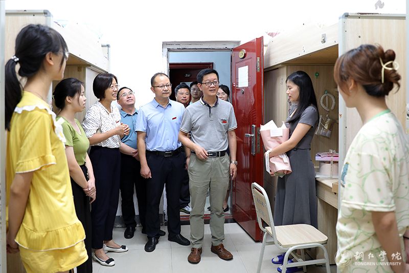 9月4日晚,学校党委书记朱洪波,副校长石维、罗静,党委委员、组织部部长梁正海,党政办主任周永雄,党委学工部副部长刘玉康一行到学生公寓楼,看望2023级本科生,并为当天生日的新生送上了生日礼物与祝福。