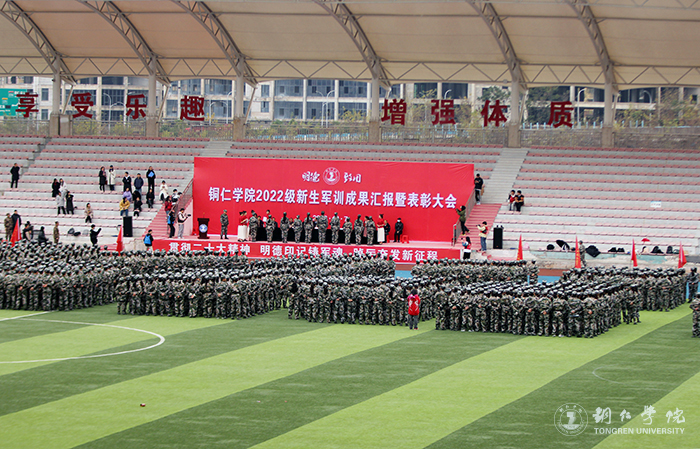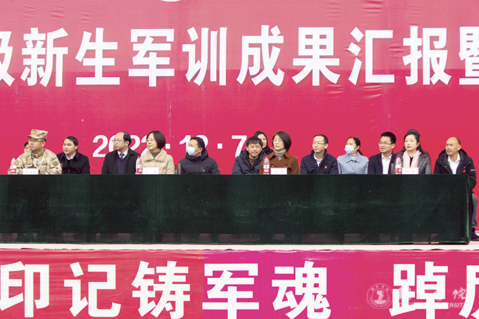 12月7日,beat365官网在田径场召开2022级新生军训成果汇报暨表彰大会。beat365官网副校长罗静,碧江区人民武装部政委田儒乾,学校党委学工部(人武部)、教务处、招就处主要负责人,各二级学院党委书记、分管学生工作副书记、学生科长,军训领导小组成员、各工作组组长、军训教官、指导员及2022级全体新生参加大会。