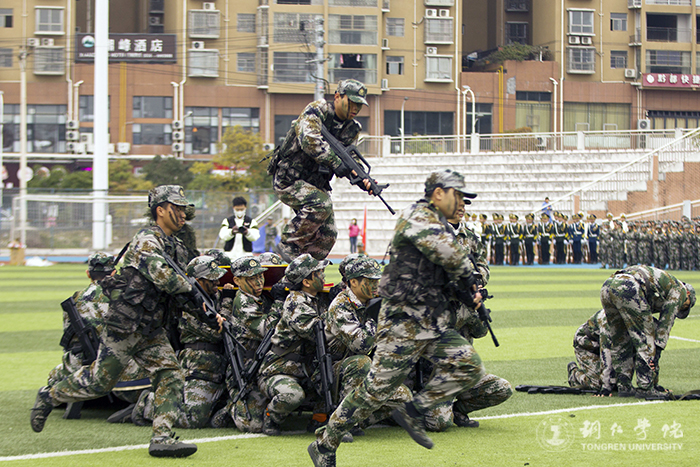 在田儒乾的指挥下,2022级新生军训团各连队开展了分列式汇报。受训新生们英姿飒爽、精神饱满、昂首阔步走过主席台,接受领导的检阅。随后,特战连、防爆连、擒敌连、棍术连、匕首操连等特殊连队带来了精彩的表演,为大家展示了他们在军训中得到的成长与收获,充分彰显了大一新生的激情与活力。