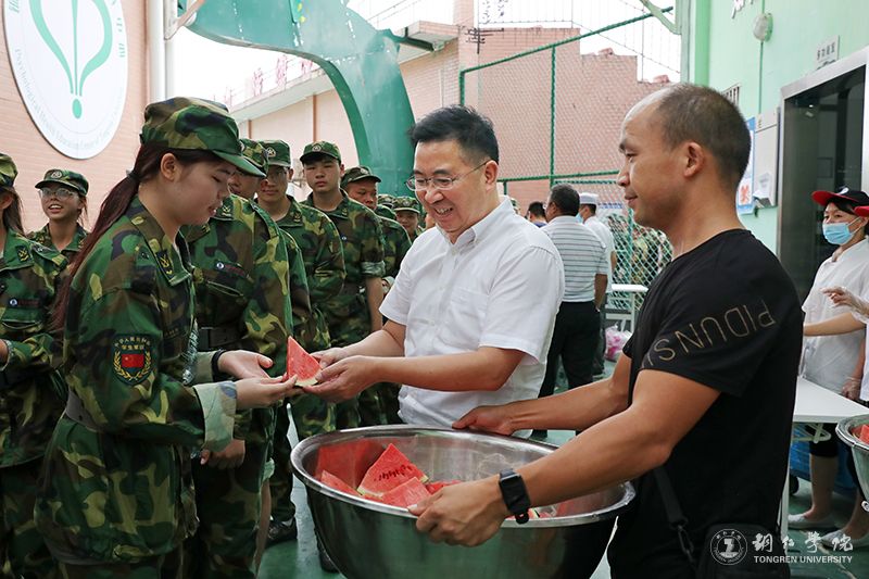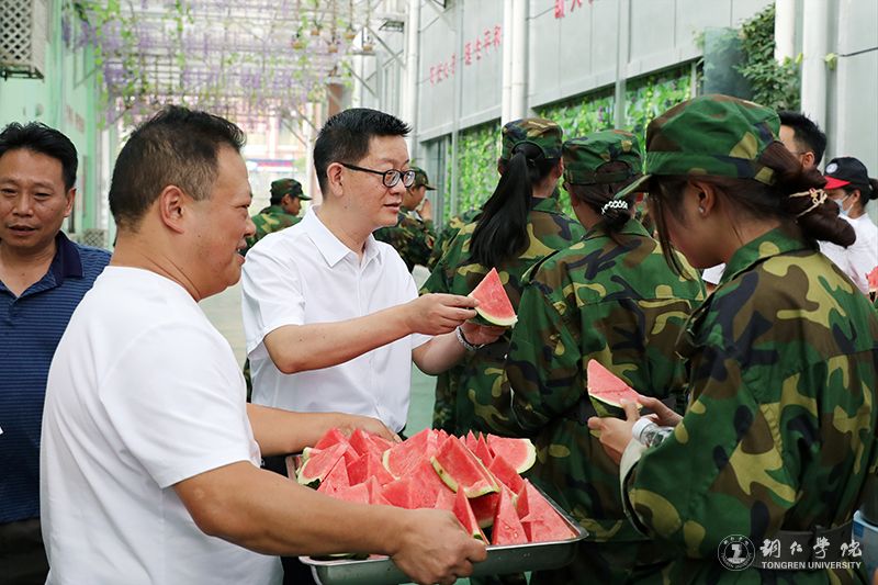 9月19日,虽然快到秋分节气,但铜仁的天气依然酷热难耐。当天下午,党委书记朱洪波、校长朱克乾、纪委书记吴先佳一行来到2023级新生军训点,看望慰问正在开展军事训练的新生,为他们送去了西瓜、矿泉水等,让大家在高强度的训练下和炎热的天气里,得到了一份清爽心情与精神鼓励。