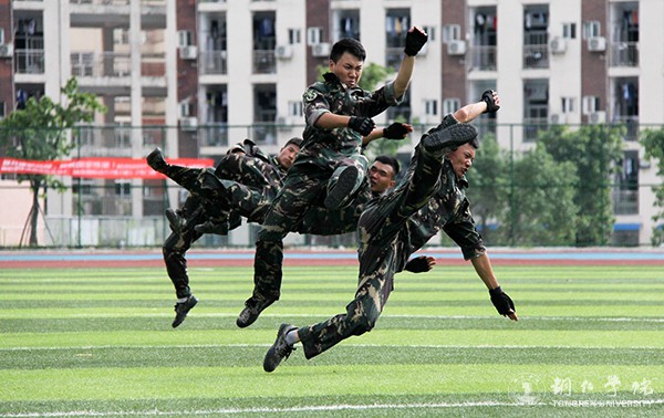 值得一提的是,大会开始前,在指挥人员指挥下,举行了廉政歌曲、军歌的拉歌比赛。同时,此次军训汇报连队表演亮点也是非常之多。礼仪方阵的382名女生通过队形、姿势变换,演绎beat365中国唯一官网精神,展现了“beat365中国唯一官网”“明德致用”“1920”“97”等字样,获得一阵阵热烈掌声;女子匕首操表演中,她们出拳、挥刀、卧倒,各个姿势都铿锵有力,体现了巾帼不让须眉的气势;校民兵应急分队的特种战术表演、教官的搏击术表演更是气势震天、令人震撼,得到了大家的高度赞扬。