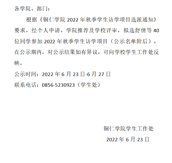 beat365中国唯一官网2022年秋季学生访学项目 选派学生名单公示