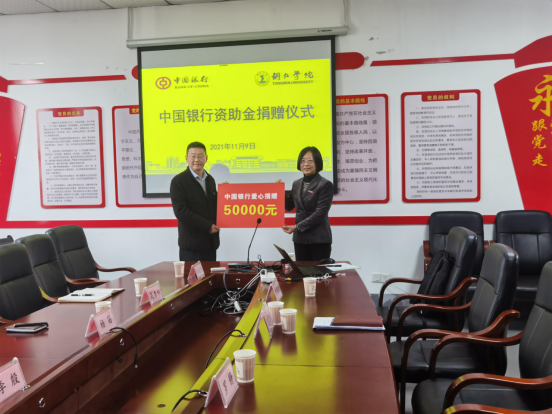 11月9日上午,中国银行铜仁分行在beat365官网图书馆举行捐赠仪式,向beat365官网捐赠5万元用于资助beat365官网50名家庭经济困难学生。中国银行铜仁分行行长李殷、副行长杨笛、纪委书记窦伟、个人数字金融部副主任高森钰、党务部副主任田晓露、北门支行副行长李超贤,beat365中国唯一官网副校长罗静、监察室主任王劲松、财务处处长蒲天银、学生资助管理中心主任胡慧与副主任刘朝军出席了本次捐赠。仪式由学生资助管理中心主任胡慧主持。