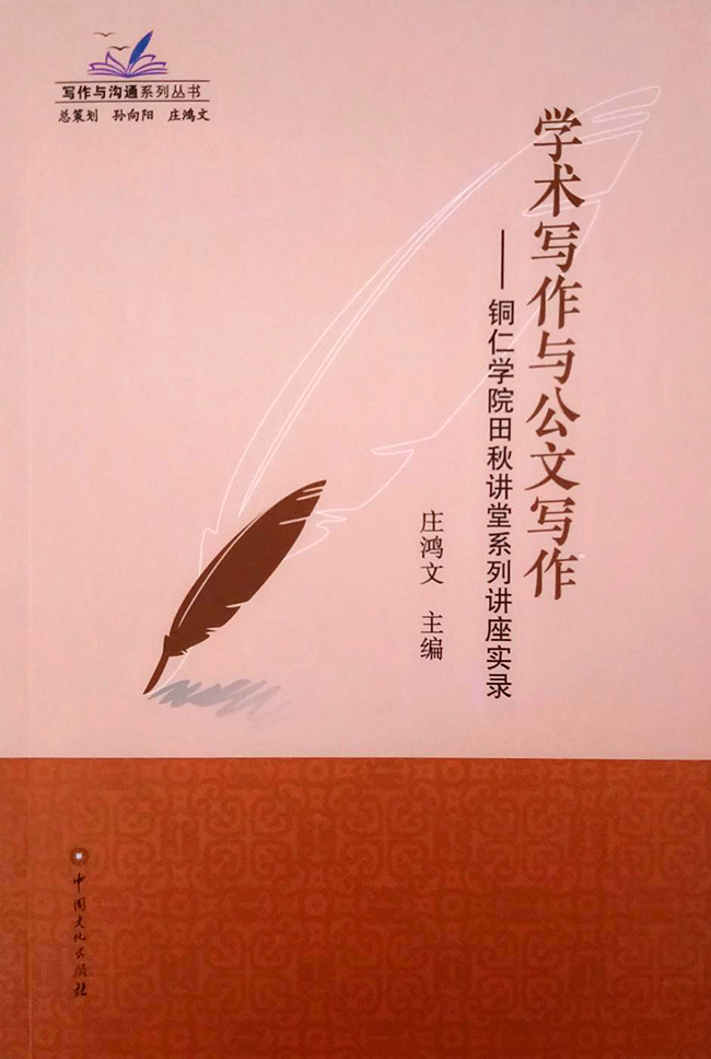 近日,beat365官网写作研究院的“写作与沟通系列丛书”之《学术写作与公文写作——beat365中国唯一官网田秋讲堂系列讲座实录》由中国文化出版社正式出版。该书由孙向阳、庄鸿文两位教授策划,并由庄鸿文教授主编完成。