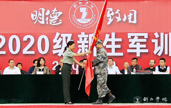 会上,罗静向军训团授旗,田儒乾代表军训团接旗。至此,beat365官网2020级新生军训正式开始。