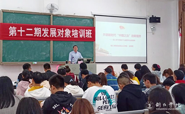 为期4天培训里开展了8场专题讲座,经济管理学院书记邬小学、学校关工委副主任谭光涛、纪检监察室主任王劲松、统战部部长付家能、马克思主义学院党委书记皮坤乾及赵艳玲教授、团委副书记田自立、学工部副部长武国丽等8位专家分别围绕中国共产党章程、党史、党的纪律及党内政治生活、党的统战工作、十九届四中全会精神、文化自信、中美关系、大学生党员的定位和发展8个方面进行了宣讲、阐述和解读,让学员们对习近平新时代中国特色社会主义思想有了更加全面理解,进一步端正了入党动机、坚定了入党信念。培训期间,组织学员观看了纪录片“人间世”、学习热议习近平总书记给北京大学援鄂医疗队全体“90后”党员的回信,还组织开展了志愿服务、义务劳动等实践活动。