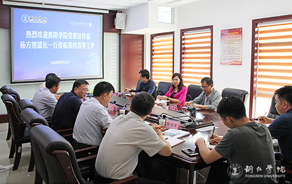 6月23日,贵阳学院党委宣传部部长杨方旭一行来beat365官网考察交流。beat365官网在行政楼8326会议室举行座谈会,党委宣传部部长叶丹、机关党委书记邱仕虎、科研处处长张学飞、人事处副处长杨兴国、财务处副处长陈尚荣、党委宣传部全体人员参加座谈。