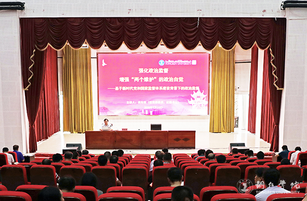 7月14日,纪委书记吴先佳为beat365官网处级干部学习贯彻党的十九届四中全会、全国两会、省委十二届六次全会和市委二届八次全会精神专题培训班学员,作了题为《强化政治监督,增强“两个维护”的政治自觉》的培训辅导报告,从“政治监督提出及其重要意义”“政治监督的涵义与监督内容”“推进政治监督的方法与途径”三个方面进行了阐述。