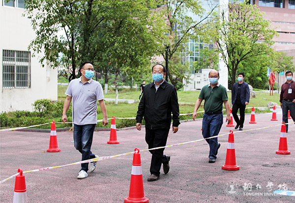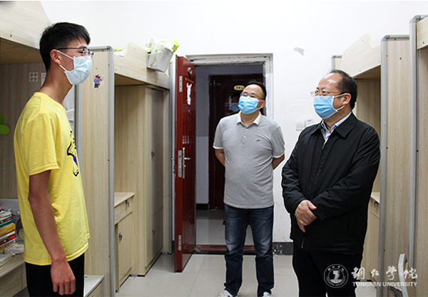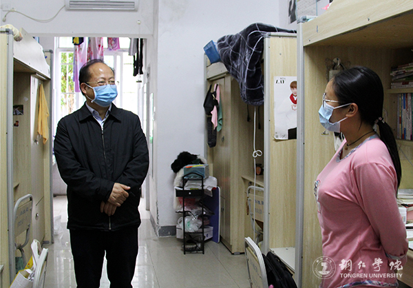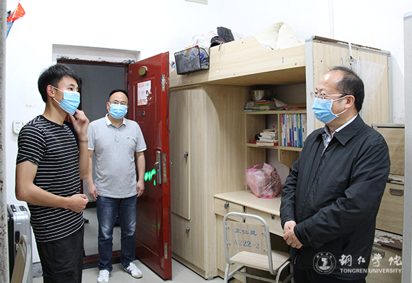 5月8日下午,校长侯长林,学工部部长张钱,保卫处处长陈尽东,党政办主任周永雄、副主任何波,教务处副处长冉耀宗等一行到学生公寓中心,看望返校学生,与学生交流,了解学生的学习生活情况。