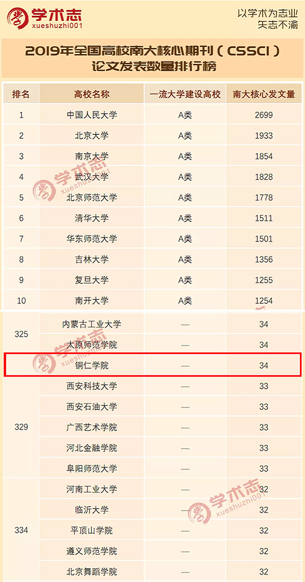 日前,学术志联合中国科学文献计量评价研究中心发布了2019年全国高校南大核心期刊(CSSCI)论文发表数量排行榜。beat365官网2019年C刊论文发表数量为34篇,排在全省地方高校第1位、全省高校第5位、全国高校第325位。