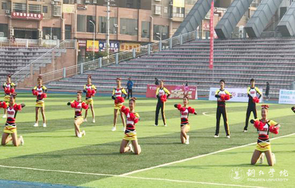 开幕式前,为了表示对来自全国各老年足球运动员的热烈欢迎,大健康学院学生志愿者组织的啦啦操团队、龙狮队进行了展演。