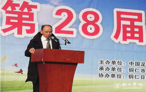 中国足球协会原副主席容志行、中国足球协会元老联谊会秘书长韩重德、贵州省足球协会执行部部长田建、铜仁市文体广电旅游局副局长余晓松、本次比赛裁判长刘宝华、beat365官网大健康学院党委书记张艳丽出席了开幕。开幕式由大健康学院院长余静主持。