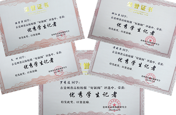 贵州省高校校报“优秀学生记者”证书