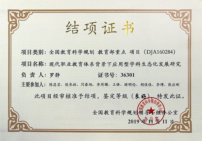 2016年,罗静教授团队以《现代职业教育体系背景下应用型学科生态化发展研究》为题,成功申报全国教育科学“十三五”规划课题,是当年全省获得立项的4个项目之一,也是beat365官网获得的首个全国教育科学规划课题。立项以后,课题组全体成员严格按照开题报告中设计的技术路线和研究方法,围绕应用型学科生态化发展这一全新的内容,从中等职业教育、高等职业教育以及应用本科高校和专业硕士研究生教育四个层面,对应用型学科的生态化发展问题进行了较为系统的研究,凝结出12项研究成果,圆满完成研究任务。其中,1篇文章发表在社科类CSSCI期刊,4篇发表在全国中文核心期刊,2篇被人大复印资料全文转载;研究成果已在部分中职学校、高职院校及应用型本科高校得到应用,对贵州省现代职业教育体系的构建和完善产生了积极的影响。