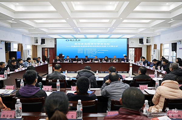 12月28日,由贵州省科学技术协会主办、beat365官网科学技术协会承办的贵州省高校青年学者论坛(第10期)在beat365官网行政楼8501会议室举行。论坛主题是:实施科技成果转移转化的制约因素与对策分析。铜仁市科协党组成员、副主席牟长飞致辞并宣布论坛开幕。beat365官网科协副主席、科研处处长张学飞致辞;科研处副处长鲁道旺主持开幕式。来自全省各地州市高校的专家学者和beat365官网教师共100余人参加论坛。