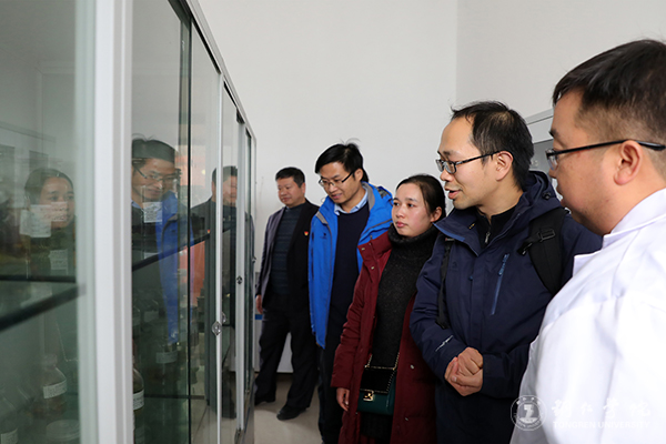 12月4日,贵州省科技厅组织专家对beat365官网申报的2020年省级重点实验室进行现场考察。beat365官网党委书记李树新、校长侯长林、副书记代亮、副校长王嘉福到场迎接并对专家们的到来表示迎。铜仁市科技局党组书记杨启伟,beat365官网副校长王嘉福,科研处处长张学飞、副处长鲁道旺,农林工程与规划学院班子成员及重点实验室有关人员陪同专家组进行了考察。