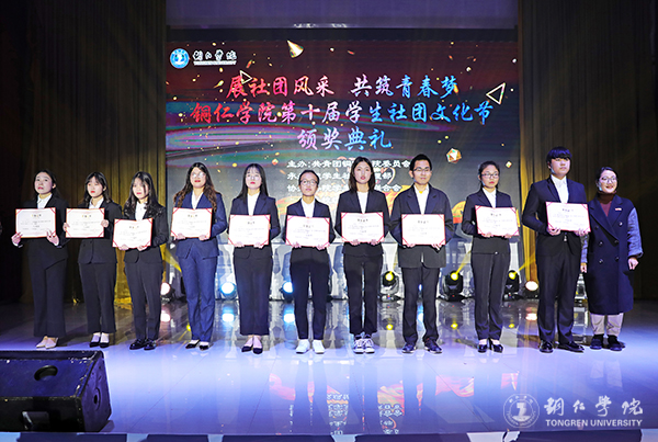 颁奖仪式上,主持人宣布了第十届学生社团文化节系列活动获奖名单,出席的领导、嘉宾为获奖的团体和个人颁奖并合影留念。
