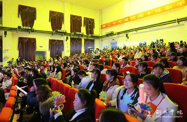 党委宣传部田淼老师,学工部石帅老师,艺术学院杨璐老师担任大赛评委。团委书记周曾艳,学生社团指导老师周倩,全校师生300余人到场观看。比赛由青年学生刘雪、杨佳丽、王满怀、马关亮主持。