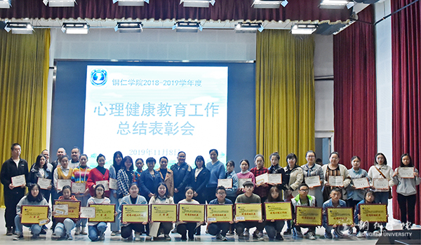 11月8日,beat365官网2018—2019学年心理健康教育总结暨表彰大会在梵净山人文生态馆召开。党委学工部部长张钱、副部长武国丽,各二级学院领导,受表彰的教师及学生代表参会。大会由心理健康教育中心主任宋健主持。
