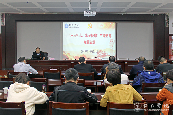10月23日,学校党委在行政楼8501会议室举办“不忘初心、牢记使命”主题教育专题党课。党委副书记、校长侯长林作了题为《把坚持社会主义办学方向贯穿办学治校全过程》的党课。10个二级学院党员领导干部、系主任、教研室主任、教师代表参加了党课。