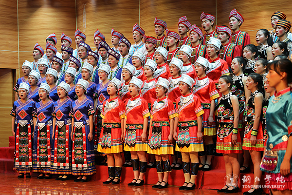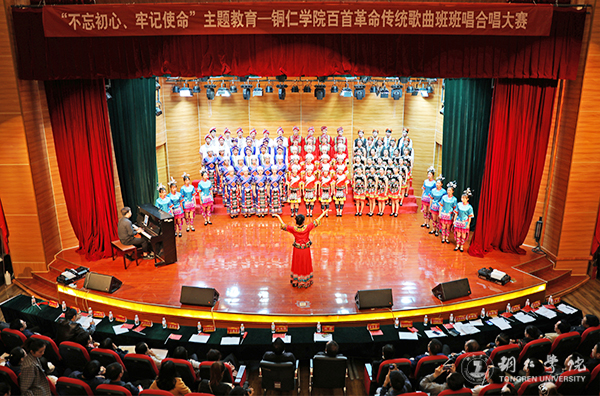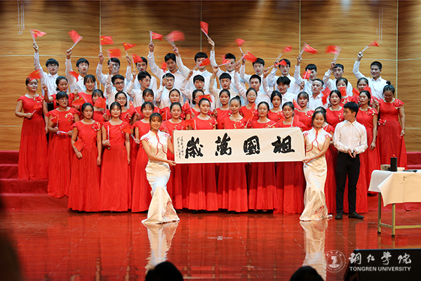 此次比赛是在经过一个多月的班班传唱百首革命传统歌曲系列活动后,由10个学院各选派一支代表队参赛并选取2首歌曲进行演绎。比赛过程中,全场气氛热烈、精彩纷呈。《我和我的祖国》《今天是你的生日》《我爱你中国》《赞赞新时代》《我的中国心》《在希望的田野上》等一首首耳熟能详、振奋人心、充满了情感与力量的革命传统歌曲,被同学们尽心尽情地演绎。同学们时而舒缓、时而欢快、时而激昂,将对党、对祖国的热爱之情融入了歌声之中,深深打动着每一位观众的内心。同时,各参赛队伍还在合唱中加入钢琴伴奏、笛子演奏、朗诵、书法表演等元素,结合领唱、伴唱等形式,让合唱大赛内容更丰富,气势更磅礴,形式更具感染力。赛后,艺术学院表演队伍带来的《娄山关》《高原我的家》再次将现场气氛推到高潮。最后,全场师生挥舞着手中的国旗,一起高声唱响《我和我的祖国》,嘹亮的歌声回荡在整个会场,浓浓的爱国情流淌在每一位师生的心中。