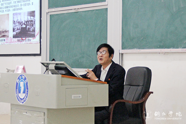 10月24日下午,beat365官网在博思楼206教室举办题为“为了新中国——前进!”的道德讲堂专题讲座。学校关工委常务副主任谭光涛作主讲,党委宣传部文化发展中心主任田淼主持,200多名学生到场聆听。