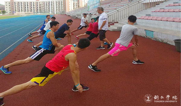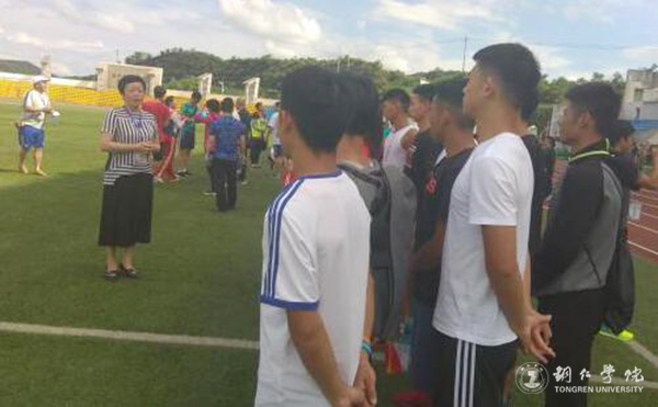 赛前,副校长看望运动员训练