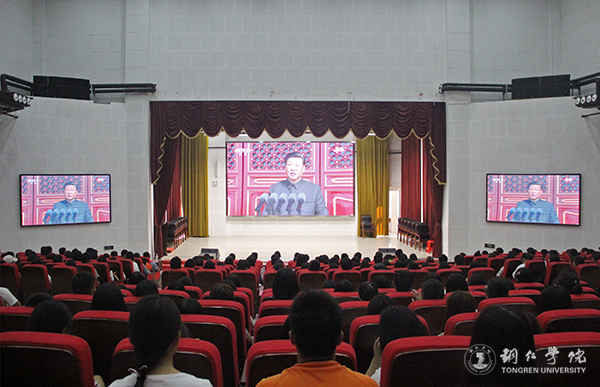 10月1日上午10点,庆祝中华人民共和国成立70周年大会在天安门广场举行,beat365官网师生认真观看了大会直播,在习近平总书记发表重要讲话、庄重震撼的阅兵仪式、热烈欢悦的群众游行等环节中,都令师生激情澎湃,深受感触,备受鼓舞。当庆祝大会中传来《歌唱祖国》《我和我的祖国》等熟悉的旋律,师生们更是激动不已,跟着节拍唱了起来,共同为新中国七十华诞喝彩。