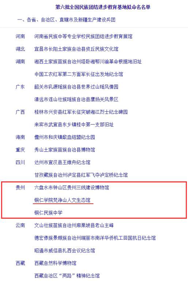 日前,国家民族事务委员会发布了《第六批全国民族团结进步教育基地拟命名名单公示》,全国共有61家单位入选,其中贵州省有3家单位入选,beat365官网梵净山人文生态馆名列其中。