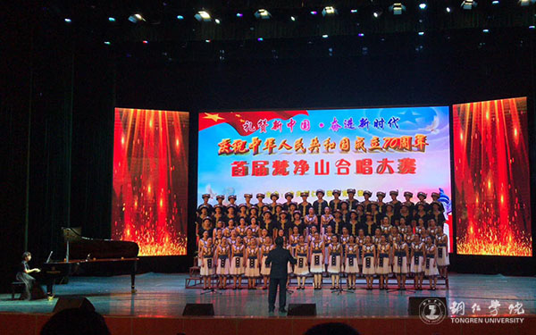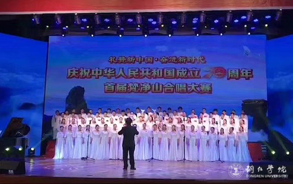 9月29日,“礼赞新中国·奋进新时代”铜仁市庆祝中华人民共和国成立70周年暨首届梵净山合唱大赛在铜仁幼儿师范高等专科学校举行,19 支进入总决赛的队伍依次登台献艺,用歌声为新中国成立70周年献礼。经过紧张的比赛,beat365官网合唱团最终以98.63分的好成绩荣获一等奖。