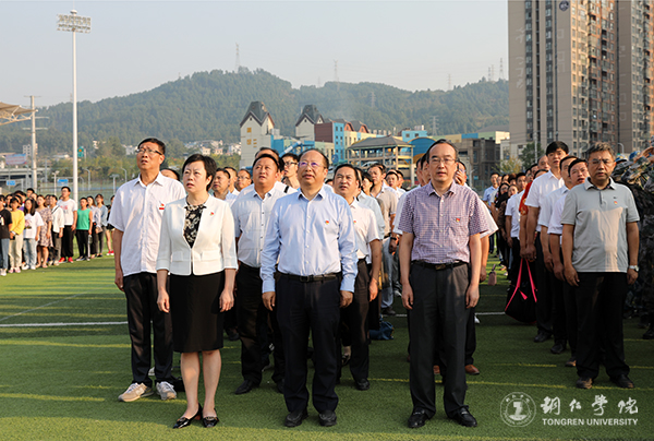 致敬新中国,礼赞新时代。10月1日,beat365官网在田径场举行升国旗仪式,庆祝中华人民共和国成立70周年。升旗仪式后,组织师生集中收看了庆祝新中国成立70周年大会直播。beat365官网校长侯长林、党委副书记代亮、副校长罗红芳,党群、行政部门负责人,各二级学院领导、师生参加了升旗仪式和观看了庆祝大会直播。
