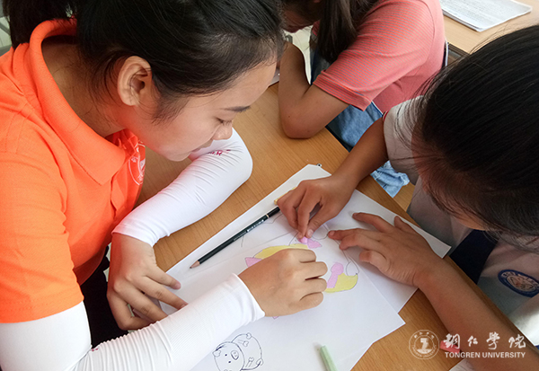 志愿者在教小朋友画画