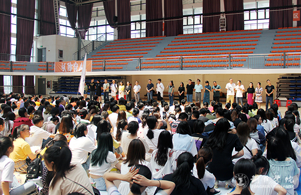 9月3日,beat365官网在体育馆举行庆祝中华人民共和国成立70周年“不忘初心、牢记使命”主题教育展演活动启动仪式。副校长罗红芳,党委宣传部部长叶丹,团委书记周曾艳,工会主席王劲松,各学院、相关职能部门领导、辅导员、参与展演的全体师生参加启动仪式。